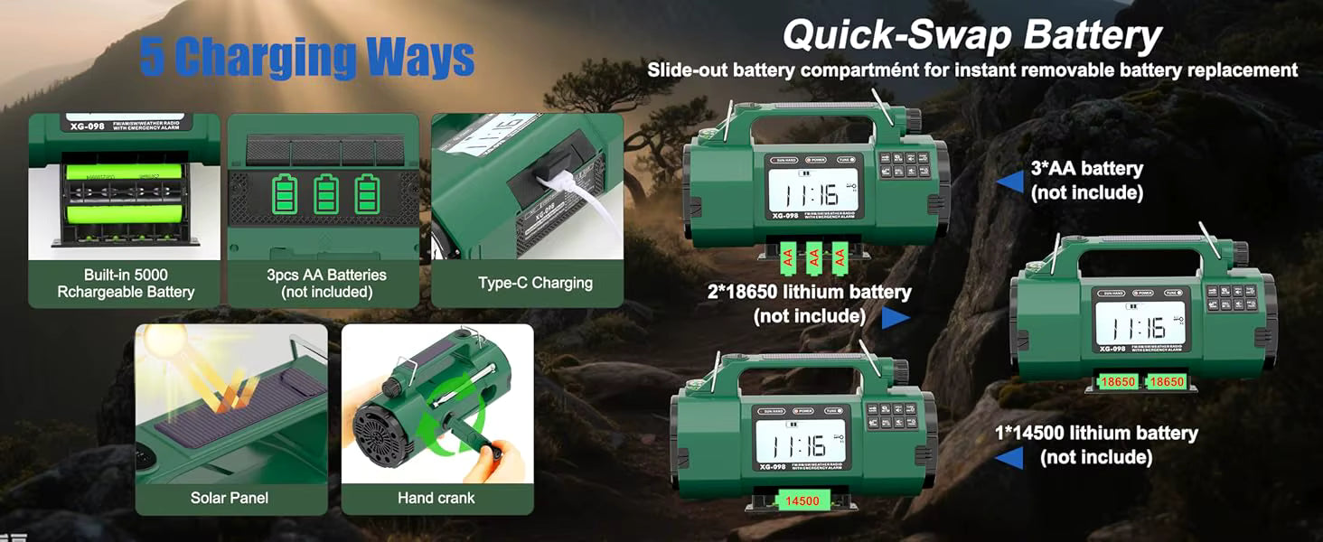 Rechargeable power is great. Solar is helpful. Hand cranking can get you through. But having a traditional battery backup compartment gives this unit another level of real-world preparedness that many customers will appreciate.